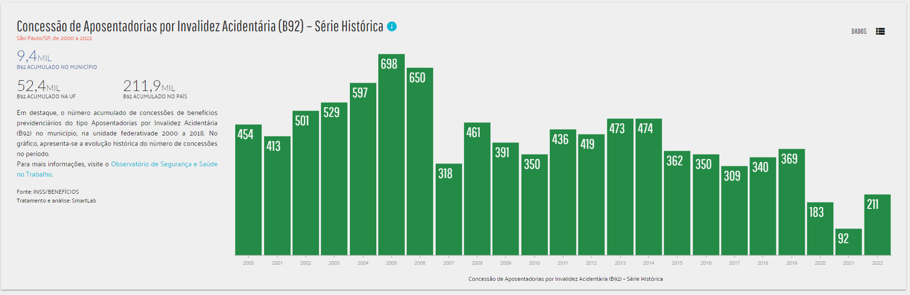 ● Concessão de Aposentadorias por Invalidez Acidentária (B92) – Série Histórica