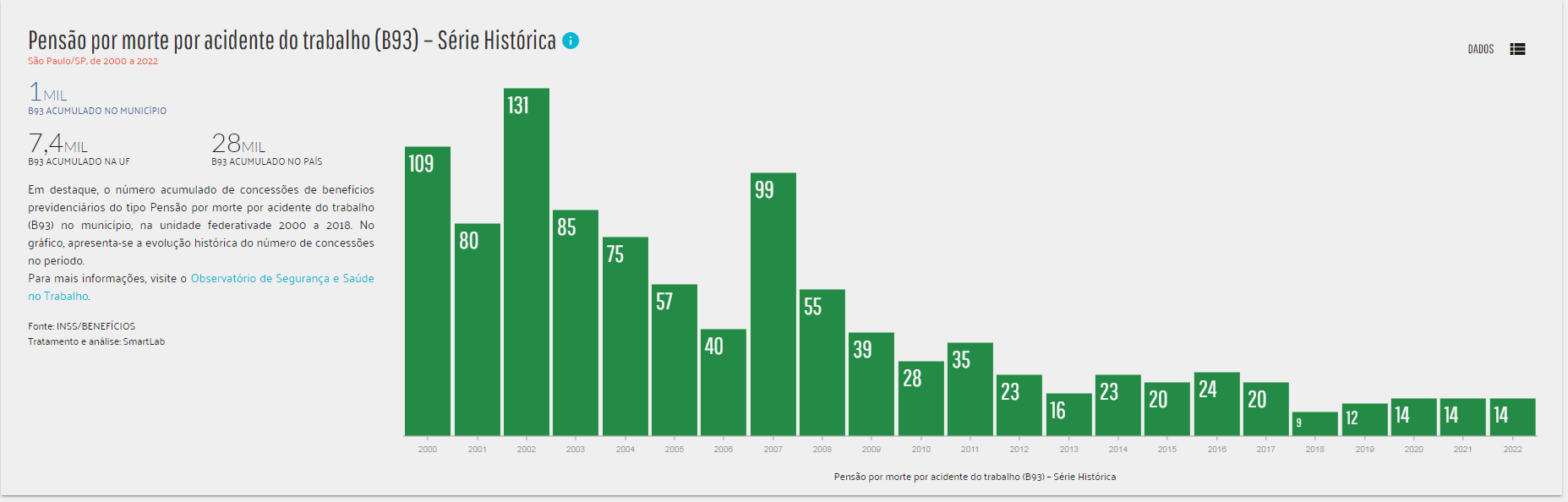 ● Pensão por morte por acidente do trabalho (B93) – Série Histórica