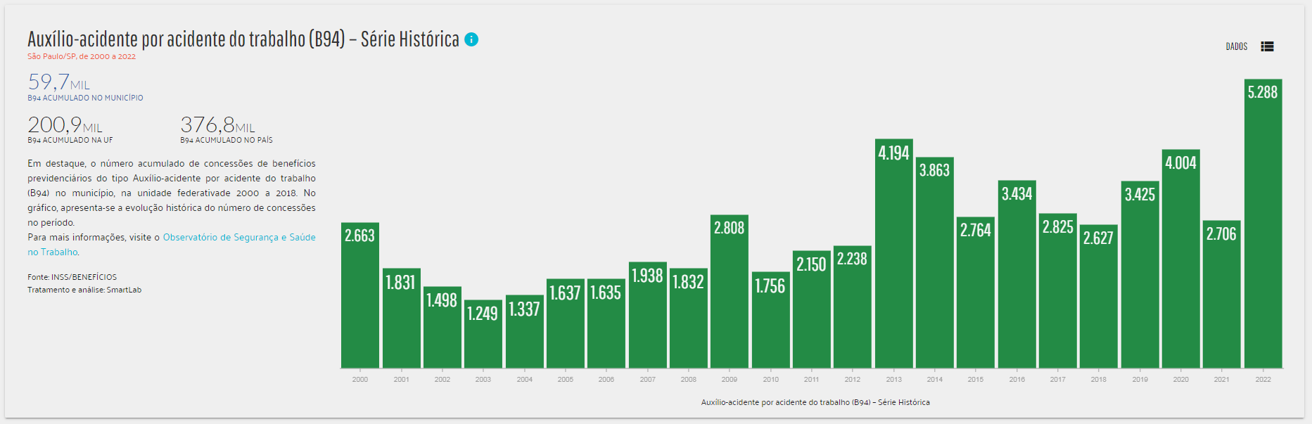 ● Auxílio-acidente por acidente do trabalho (B94) – Série Histórica