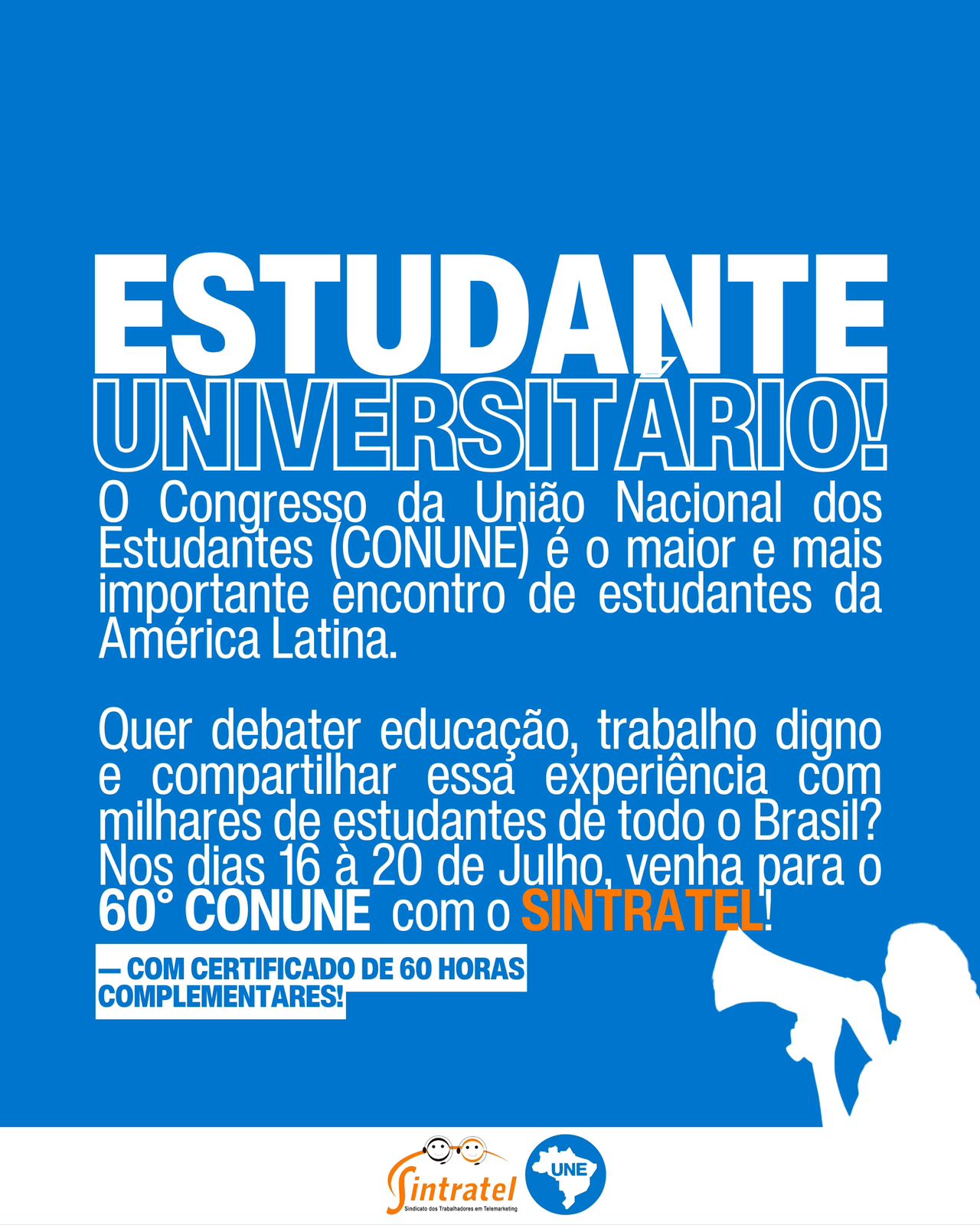 O SINTRATEL, em parceria com a UNE (União Nacional dos Estudantes), tem um convite especial para você que acredita na educação como ferramenta de transformação social!